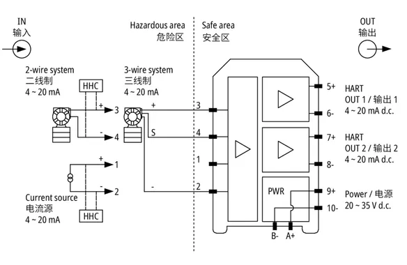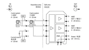 | 适用的现场设备 | 二线制和三线制变送器 (HART) 或电流源 HART 信号等等。 |