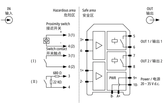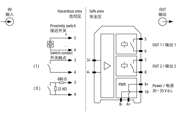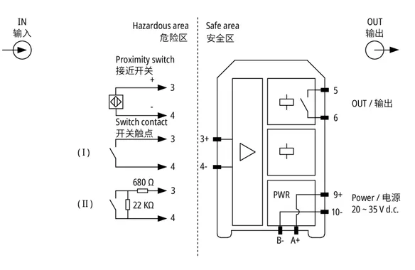 | 电源电压 | 20-35 V DC,< 30 mA(在 24 V DC 电源电压及继电器触点闭合时) |