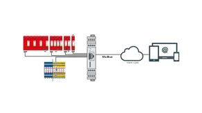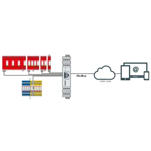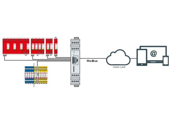 紧凑型DIN轨安装的通讯模块,通过Modbus RTU/TCP传输SPD的状态信息,如功能状态,SPD货号,替换模块货号。