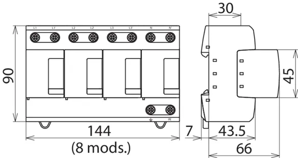 | 雷电冲击电流 (10/350 μs) [L-N]/[N-PE] (Iimp ) | 25 / 50 kA |