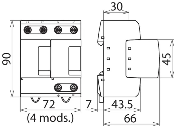 - 预接线的1级+2级+3级火花间隙型复合雷电流电涌保护器,由底座和可插拔整体式保护模块组成