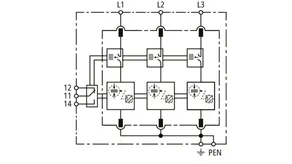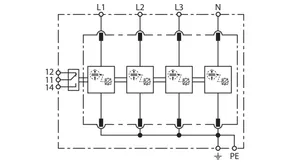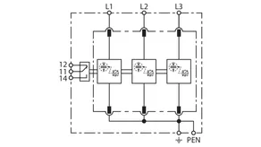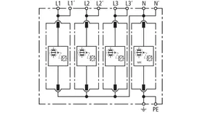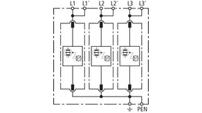 | 雷电冲击电流 (10/350 µs) [L1+L2+L3-PEN] (Itotal ) | 75 kA |