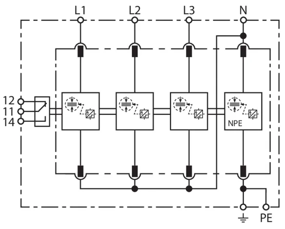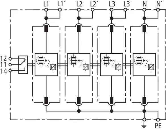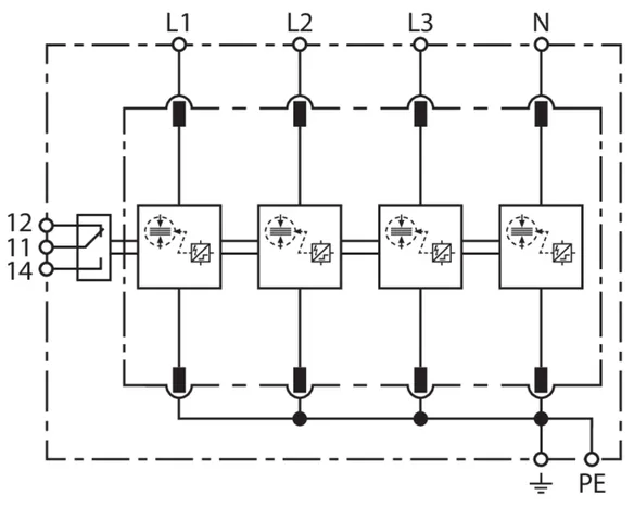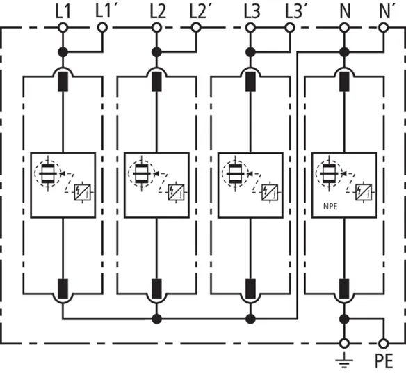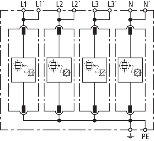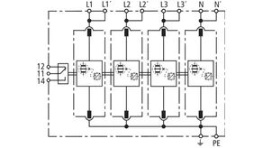 | 雷电冲击电流 (10/350 µs) [L1+L2+L3+N-PE] (Itotal ) | 100 kA |