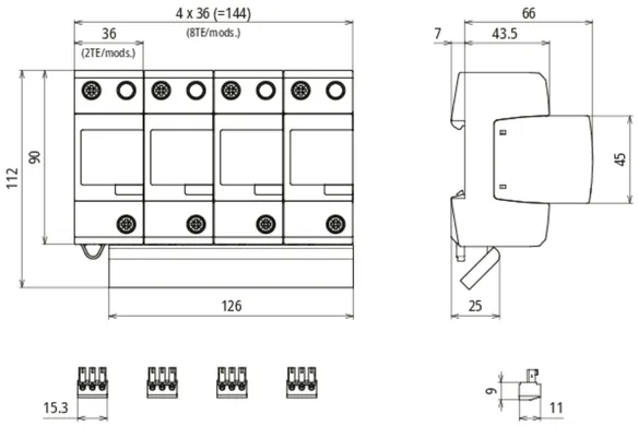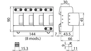 - 预接线的1级+2级+3级火花间隙型复合雷电流电涌保护器,由底座和可插拔整体式保护模块组成