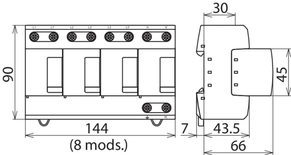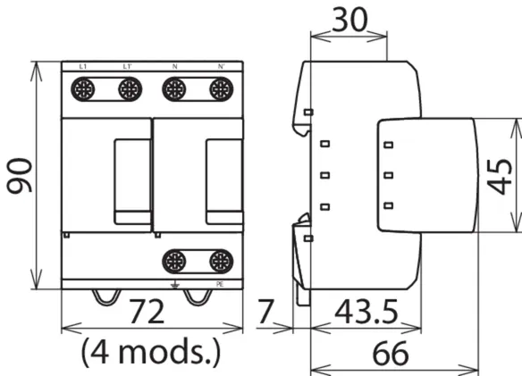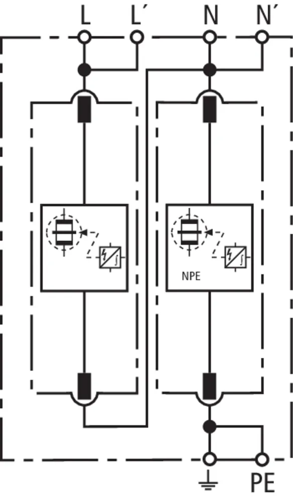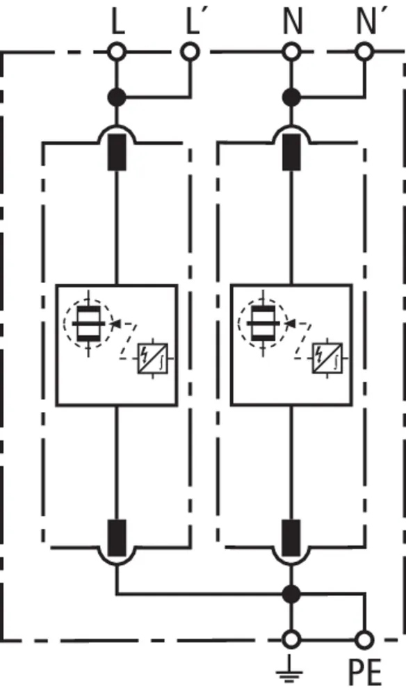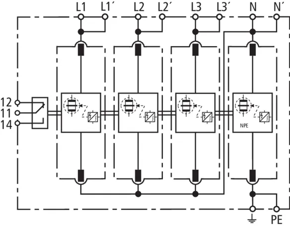 | 雷电冲击电流 (10/350 μs) [L-N]/[N-PE] (Iimp ) | 25 / 100 kA |