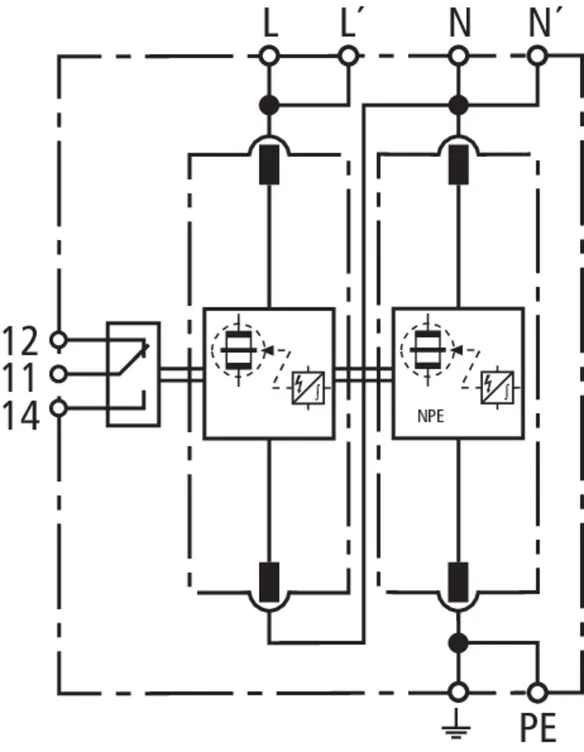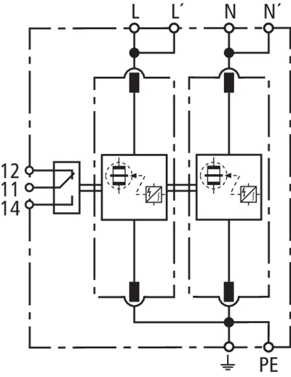 | 雷电冲击电流 (10/350 μs) [L,N-PE] (Iimp ) | 25 kA |