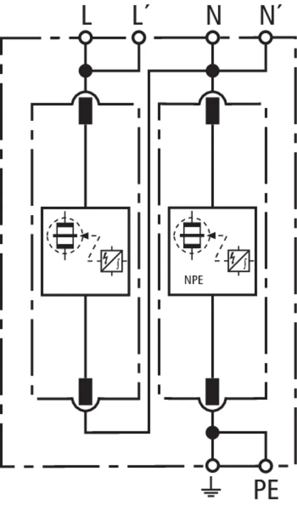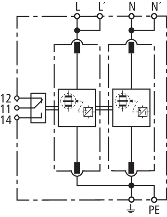 | 雷电冲击电流 (10/350 μs) [L-N]/[N-PE] (Iimp ) | 25 / 50 kA |