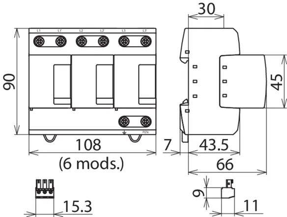 | 电涌保护器符合 EN 61643-11 / IEC 61643-11 标准 | 类型 1 + 类型 2 + 类型 3 / I 类 + II 类 + III 类 |