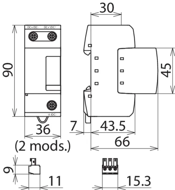 | 电压保护水平 (DC+/DC- -> DC-/DC+) / (DC-/DC+ -> 9) (UP ) | ≤ 1.5 / ≤ 1.5 kV |
