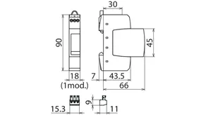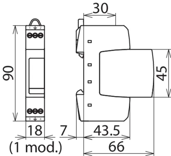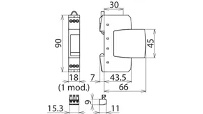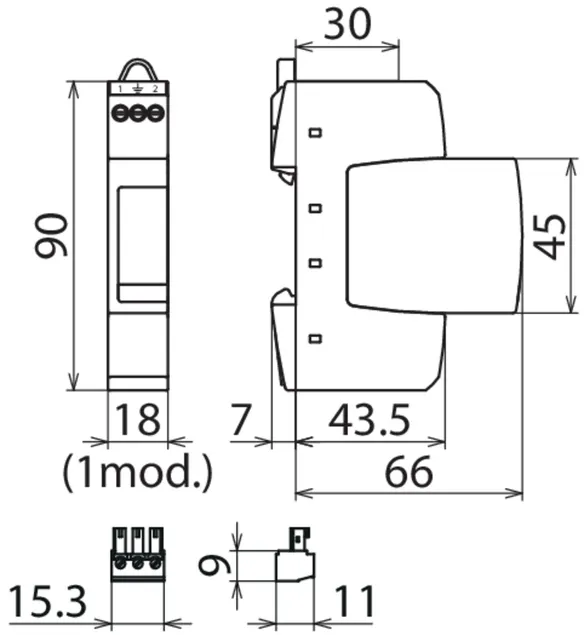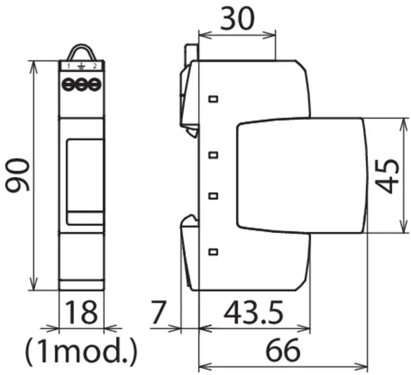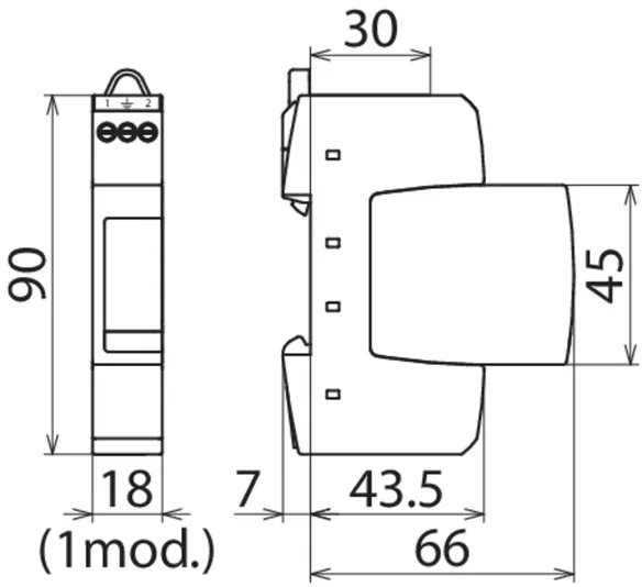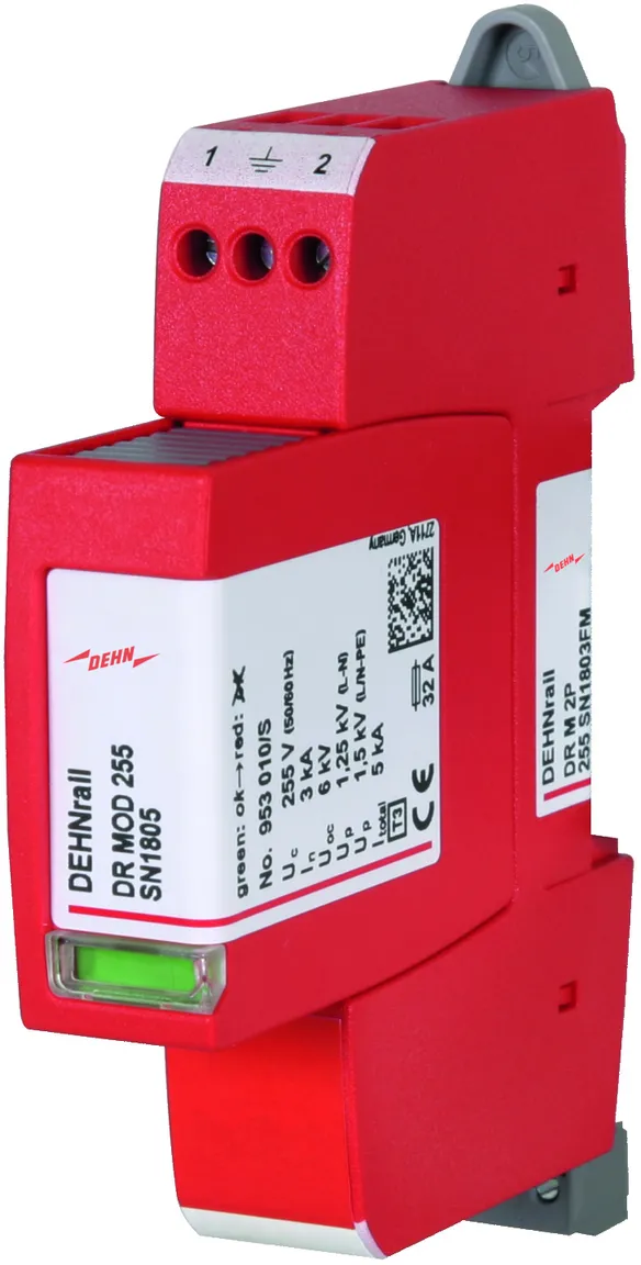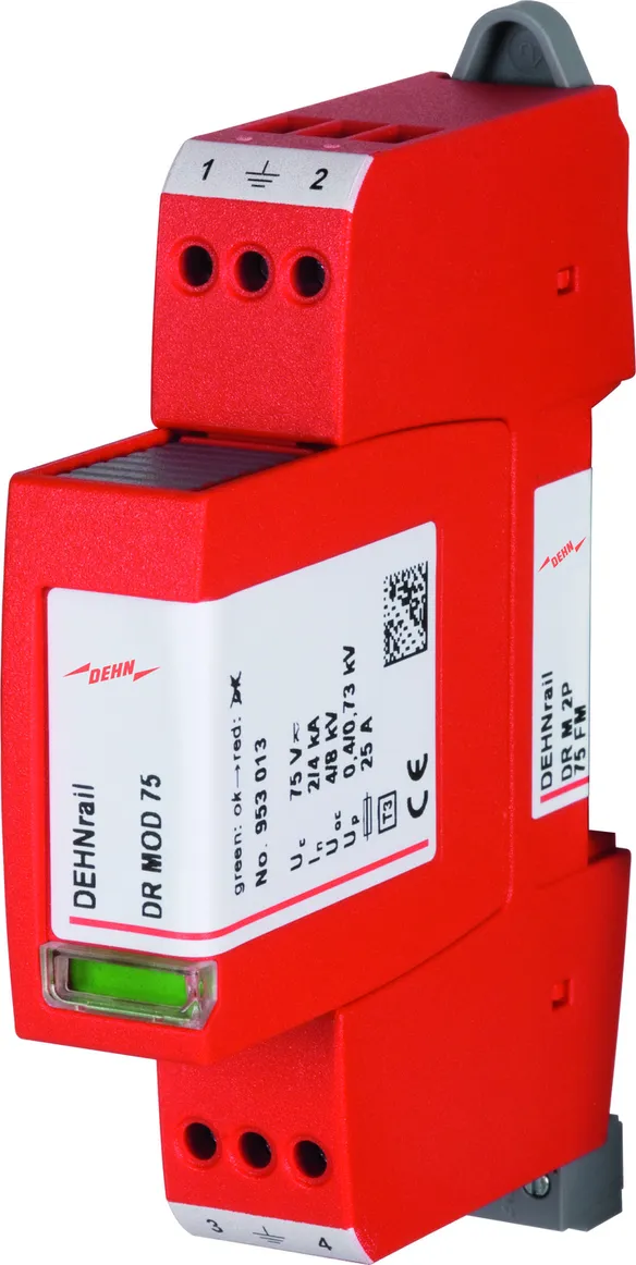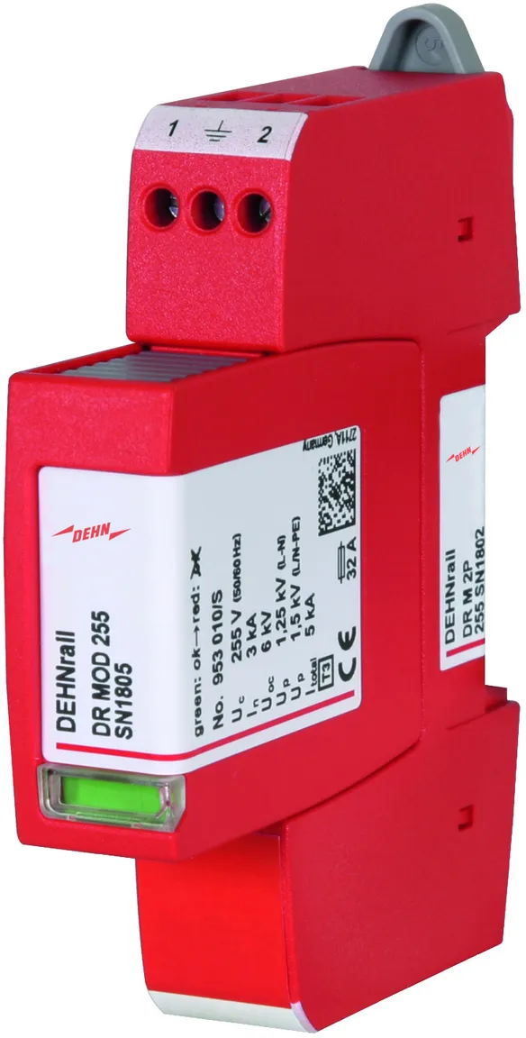 - 两极电涌保护器,由底座和插入式保护模块组成