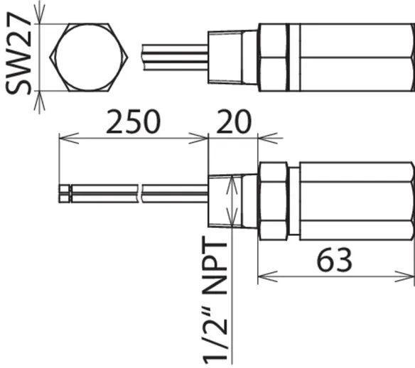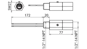 | 安装方式 (仪表侧/设备侧) | 1/2-14 NPT 母螺纹 / 1/2-14 NPT 公螺纹 |