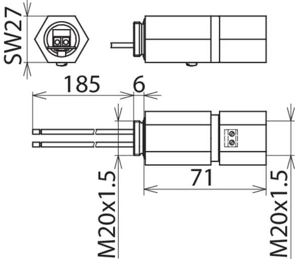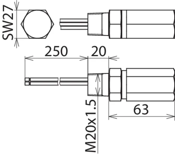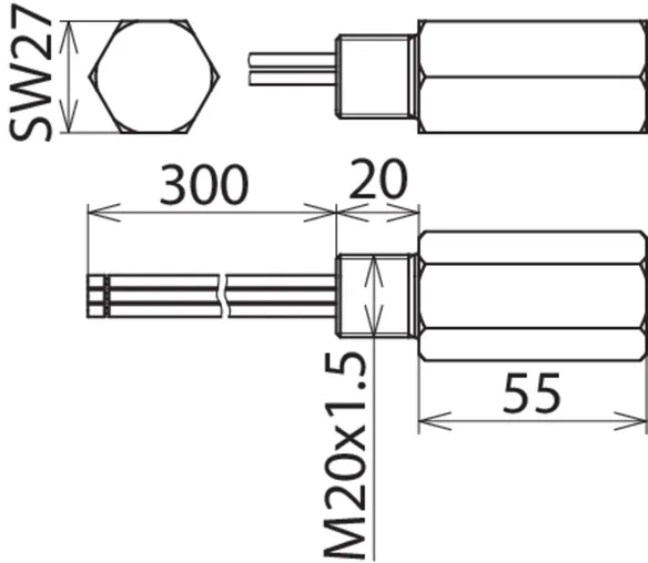 | 安装方式 (仪表侧/设备侧) | M20 x 1.5 母螺纹/ M20 x 1.5 公螺纹 |