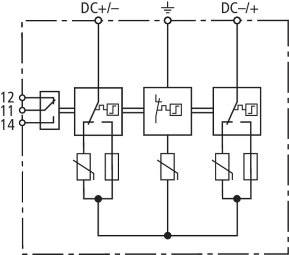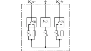 - DEHNguard YPV SCI … 经过验证的防故障 Y 型电路,可防止光伏直流回路绝缘故障对电涌保护器造成的损坏