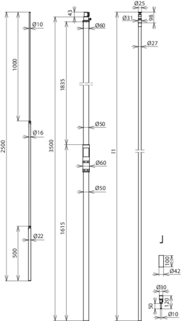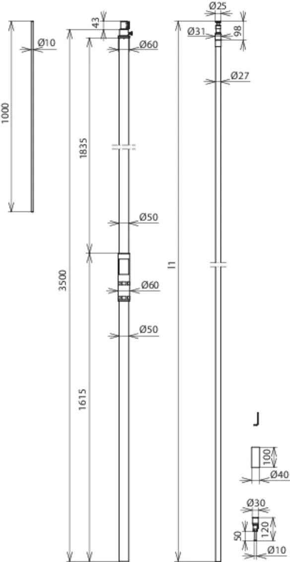 | 带接闪针的最大自由长度 (墙面安装) | 3500 mm |