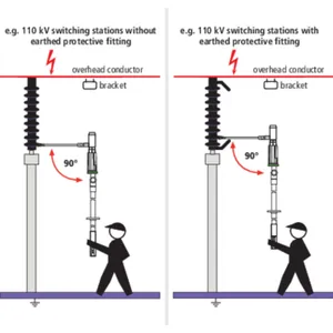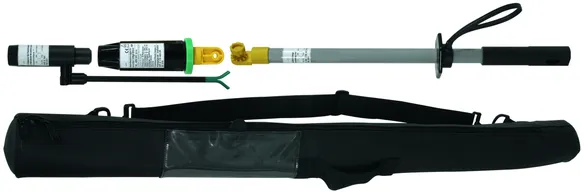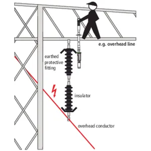 带 "L" 类电场传感器的非接触式电压检测器 ASP 必须以绿环为标识置于最后一个接地的保护件,使电场传感器指向固定到另一个绝缘体端部的架空导线方向。