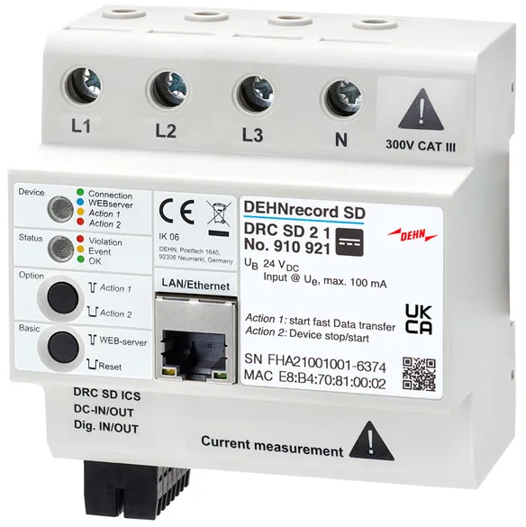 | 冲击电流测量范围 (8/20 µs) (10/350 µs) | 4-100 kA |