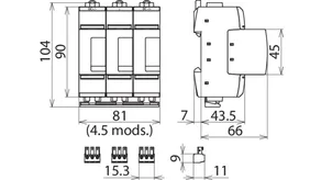 - 完整的预接线单元,由底座和插入式保护模块两部分组成,用于最大1500V直流光伏系统