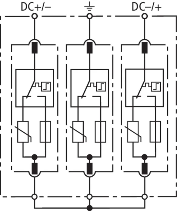 - 内置直流熔丝可保证安全的更换保护模块,且无拉弧现象产生