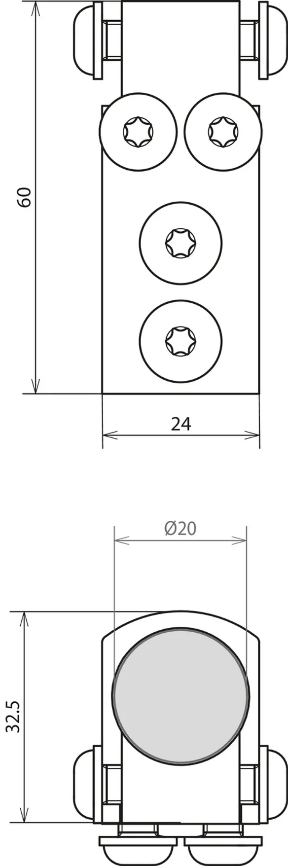 | 螺钉 | 6x M6 x 10 mm lTX30 (4x 2.5 mm2 - 最大 16 mm2) [2 个接地极 / 4 个连接端子] |