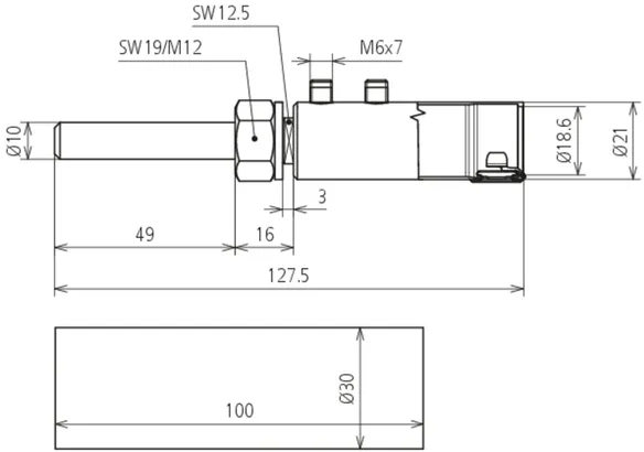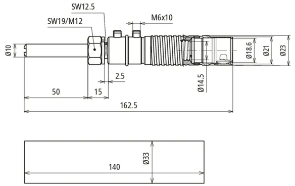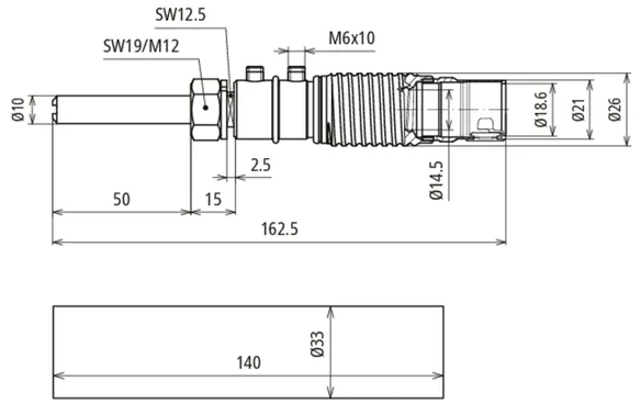 | 连接 | 螺栓 Ø10 mm,长 50 mm,带有 M12 螺纹,配有弹簧垫圈 |