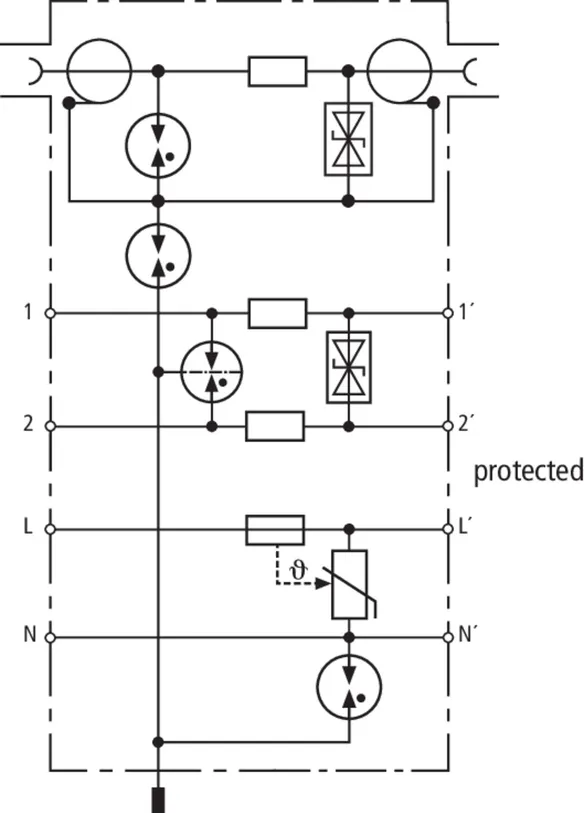 - 通过释放及取出端子,可实现快速更护电涌保护器