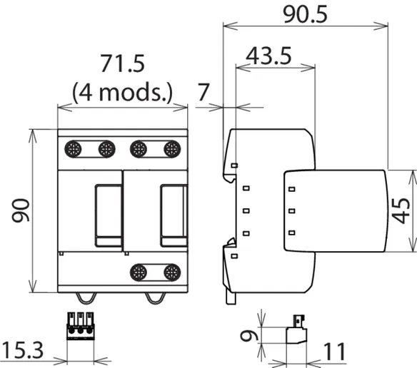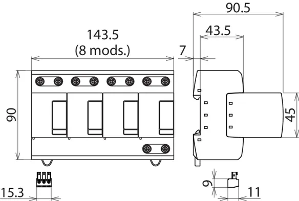 | 电涌保护器符合 GB/T 18802.11 / IEC 61643-11 标准 | 1 型 + 2 型 / I 级 + II 级 |
