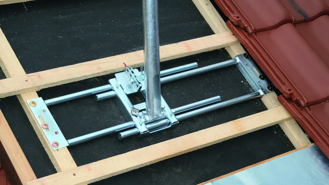 The roof rafter bracket can be installed on suitable, stable substructures.The roof rafter bracket is designed for up to 320 Nm torque.Mount the bracket from outside and screw it directly on the rafters or on the counter battens.The roof rafter bracket cannot be used with on-roof insulation and only conditionally with plain tiles.Note: Mounting conditions on site must be clarified with the builder.