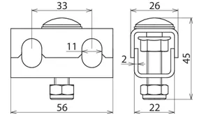 | Connection holes for EB conductor with cable lug | 2x Ø11 mm, 12x Ø7 mm |
