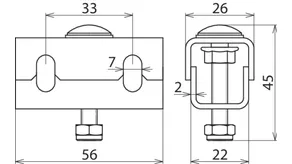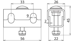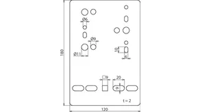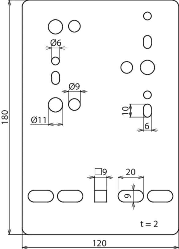 | Fixing holes for cable tray | [4x] 9 x 20 / [1x] 9 x 9 mm |