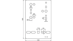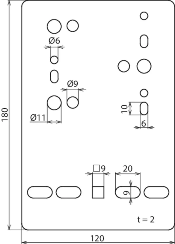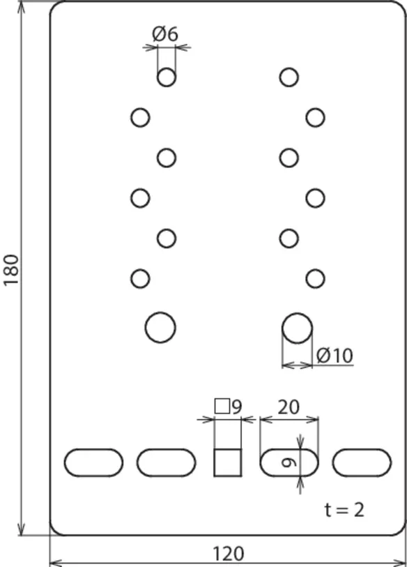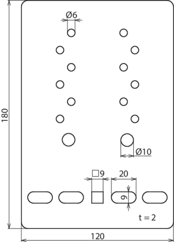 | Fixing holes for wire cable tray | wire cable tray [4x] 9 x 20 / [1x] 9 x 9 mm |