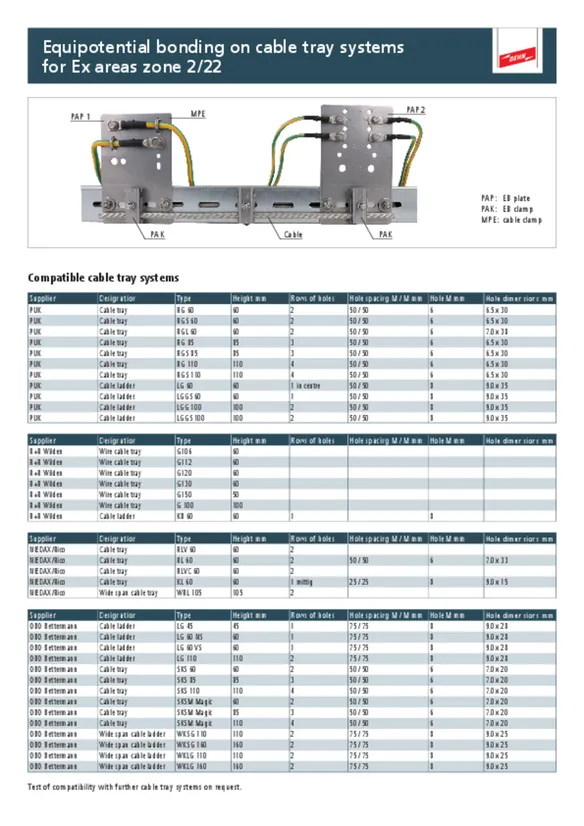 - For mounting on the perforated cable tray or on the equipotential bonding plate (PAP 1 / PAP 2)
