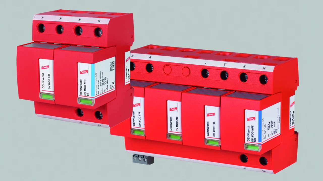 - Prewired spark-gap-based combined lightning current and surge arrester, consisting of a base part and plug-in protection modules