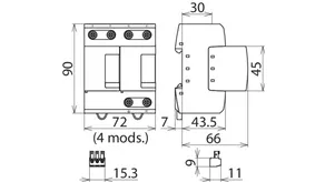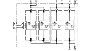 | Lightning impulse current (10/350 µs) [R-N, T-N, R-T] (Iimp ) | 25 kA |