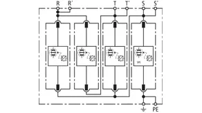 | Nominal discharge current (8/20 µs) [R-T,S-T,R-S] (In ) | 25 kA |