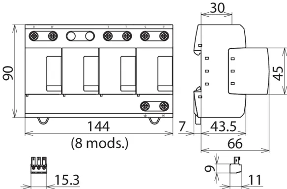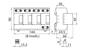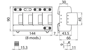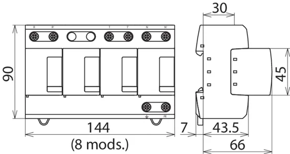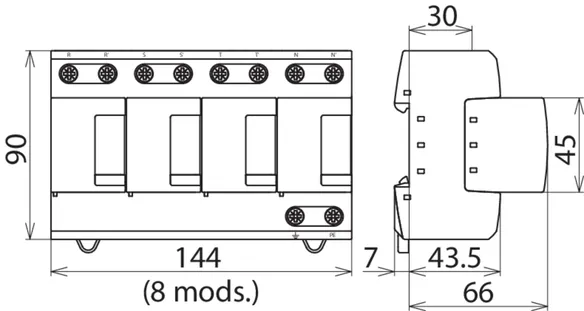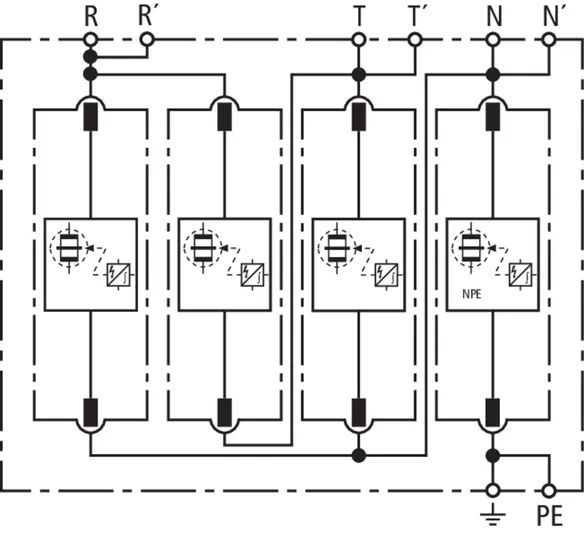 | Nominal discharge current (8/20 µs) [R+T+S+N-PE] (In ) | 100 kA |
