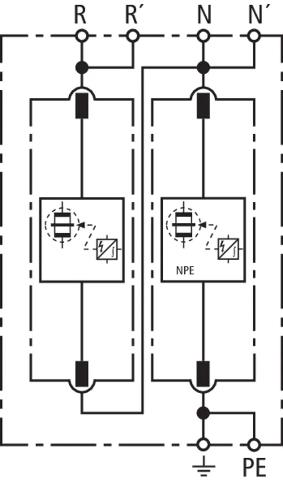 | Nominal discharge current (8/20 µs) [N-PE] (In ) | 100 kA |