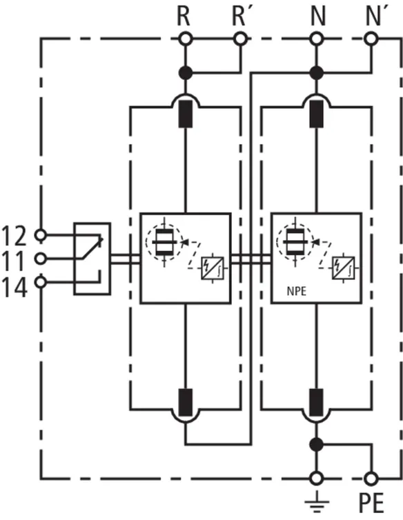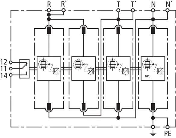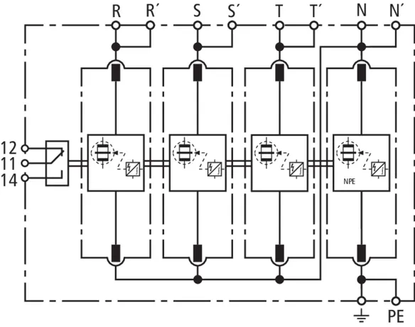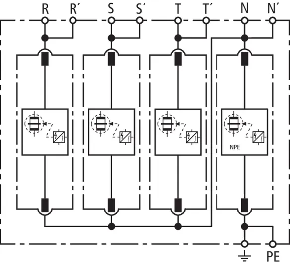 | Lightning impulse current (10/350 µs) [N-PE] (Iimp ) | 100 kA |