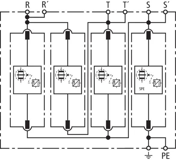 | Lightning impulse current (10/350 µs) [R+S+T+N-PE] (Itotal ) | 100 kA |