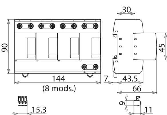 - Easy replacement of protection modules without tools due to module locking system with module release button