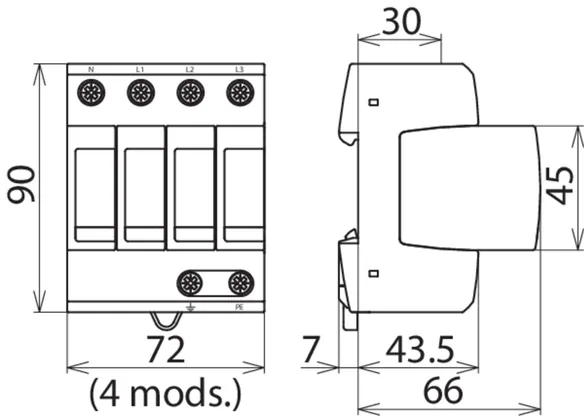 | SPD according to EN 61643-11 / IEC 61643-11 | type 2 / class II |