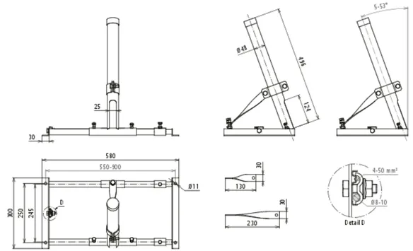 For fixing Ø40/50 air-termination rods and for top-mounting HVI light plus and HVI supporting tubes with inside conductor routing.