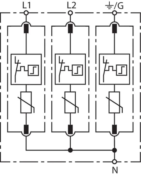 | Max. continuous operating voltage AC [L-N] / [L-G] / [L-L] / [N-G] (MCOV) | 385 V a.c. / 565 V a.c. / 770 V a.c./ 180 V a.c. |