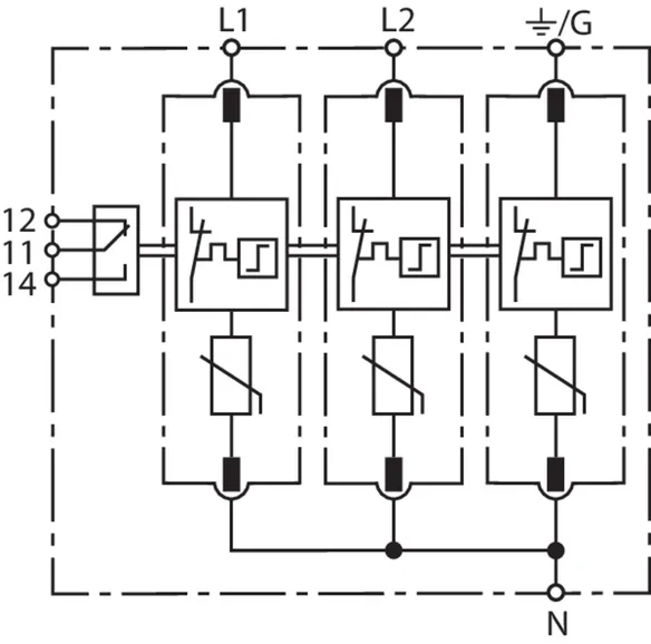 | Max. continuous operating voltage AC [L-N] / [L-G] / [L-L] / [N-G] (MCOV) | 510 V a.c. / 690 V a.c. / 1020 V a.c. / 180 V a.c. |