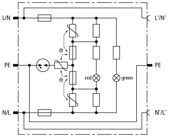 | Total discharge current (8/20 µs) [L+N-PE] (Itotal ) | 5 kA |