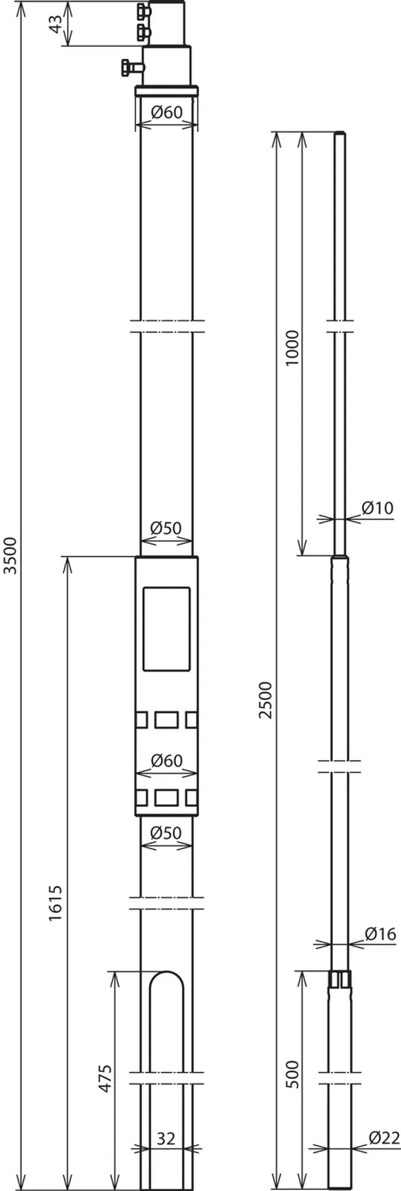 | Max. free length with air-termination rod (wall mounting) | 5500 mm |