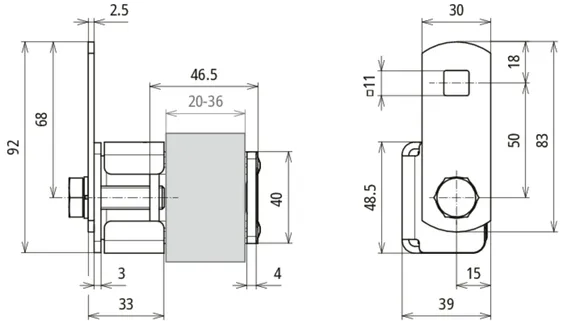 | Clamping range | 20-36 mm |