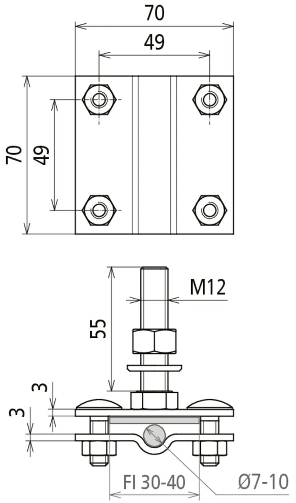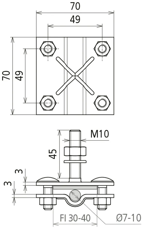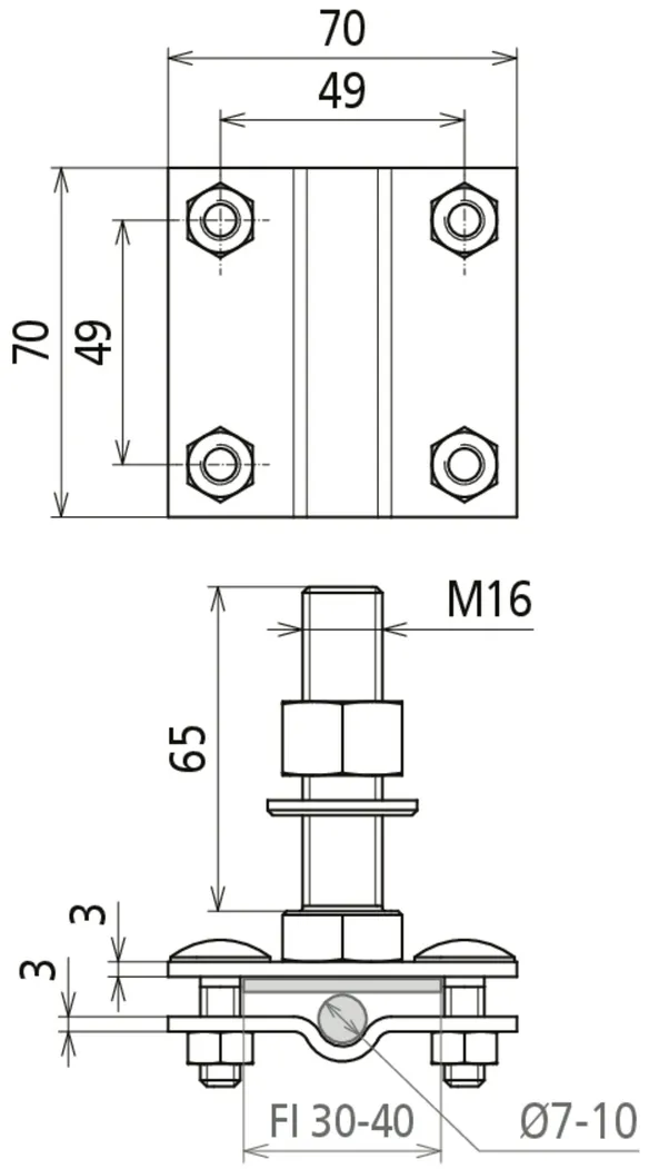 | Clamping range Rd / Fl | 7-10 / 30-40 mm |