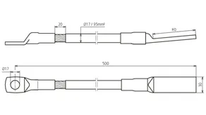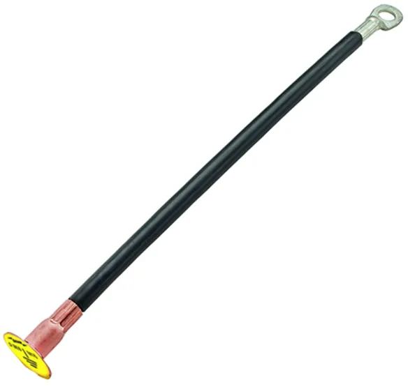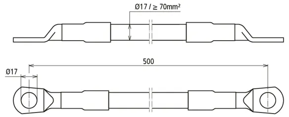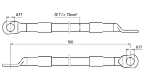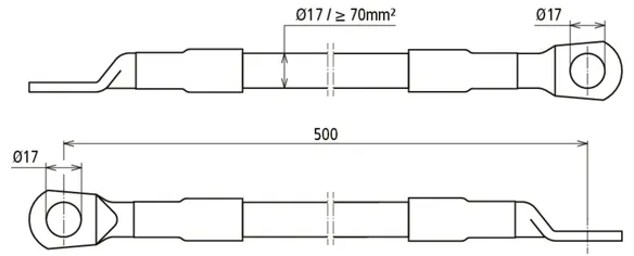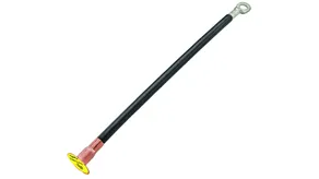 The earthing connectors are designed for earthing, return circuits and equipotential bonding in railway line applications. The version for earthing large pipes is designed for use with pile and large pipe foundations. The product consists of a steel cable with a copper-plated steel lug at one end and a cable lug at the other end. A heat-shrinkable sleeve at the welding lug end prevents water from penetrating the steel cable. The steel cable is therefore a preventative anti-theft measure. This earthing connector also has the technical approval of DB Netz AG and can be used there without hesitation in planning.