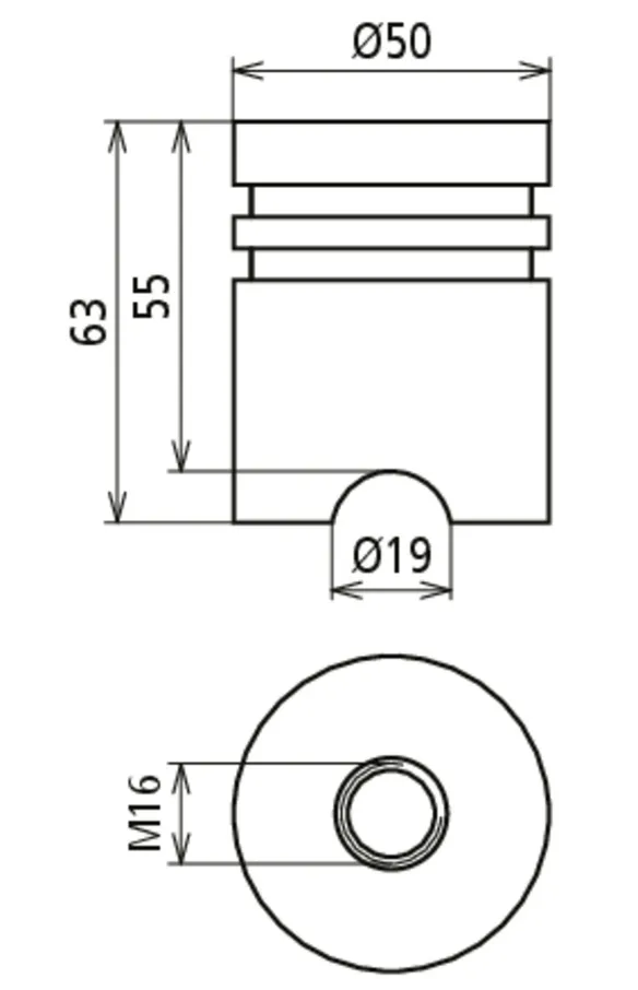 | Borehole cable lug | 13 mm for M12 and 17 mm for M16 |