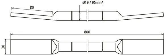 The earthing bridges are designed for earthing, current return circuits and equipotential bonding in railway line applications. This version is installed flush with the surface and the reinforcing steel is welded to the earthing reinforcement. The sockets mounted on both ends allow effective and economical component feed-through. This earthing bridge also has a technical approval from DB Netz AG and can therefore be reliably used in planning.